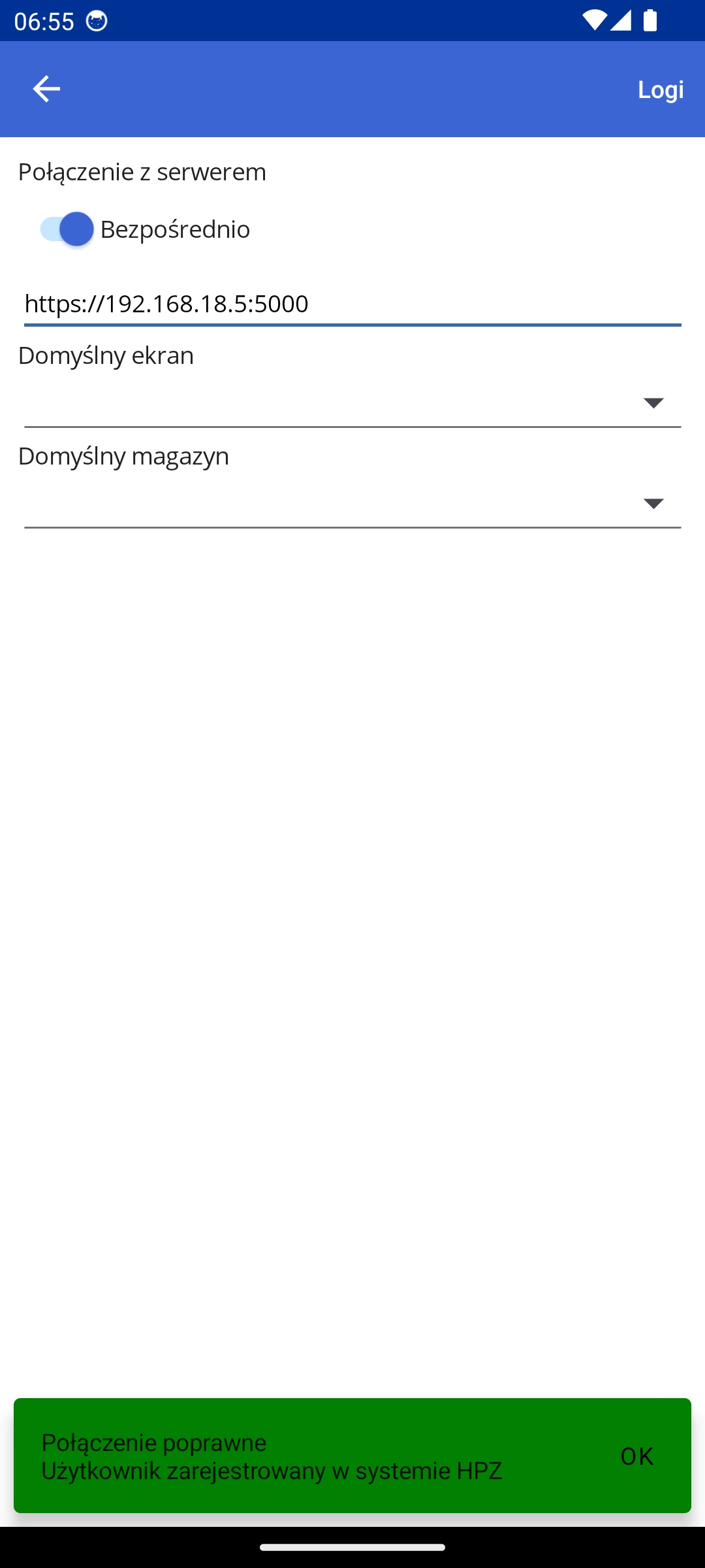- Kliknij przycisk "Sprawdź połączenie". Jeżeli połączenie jest poprawne, pojawi się komunikat na zielonym tle.