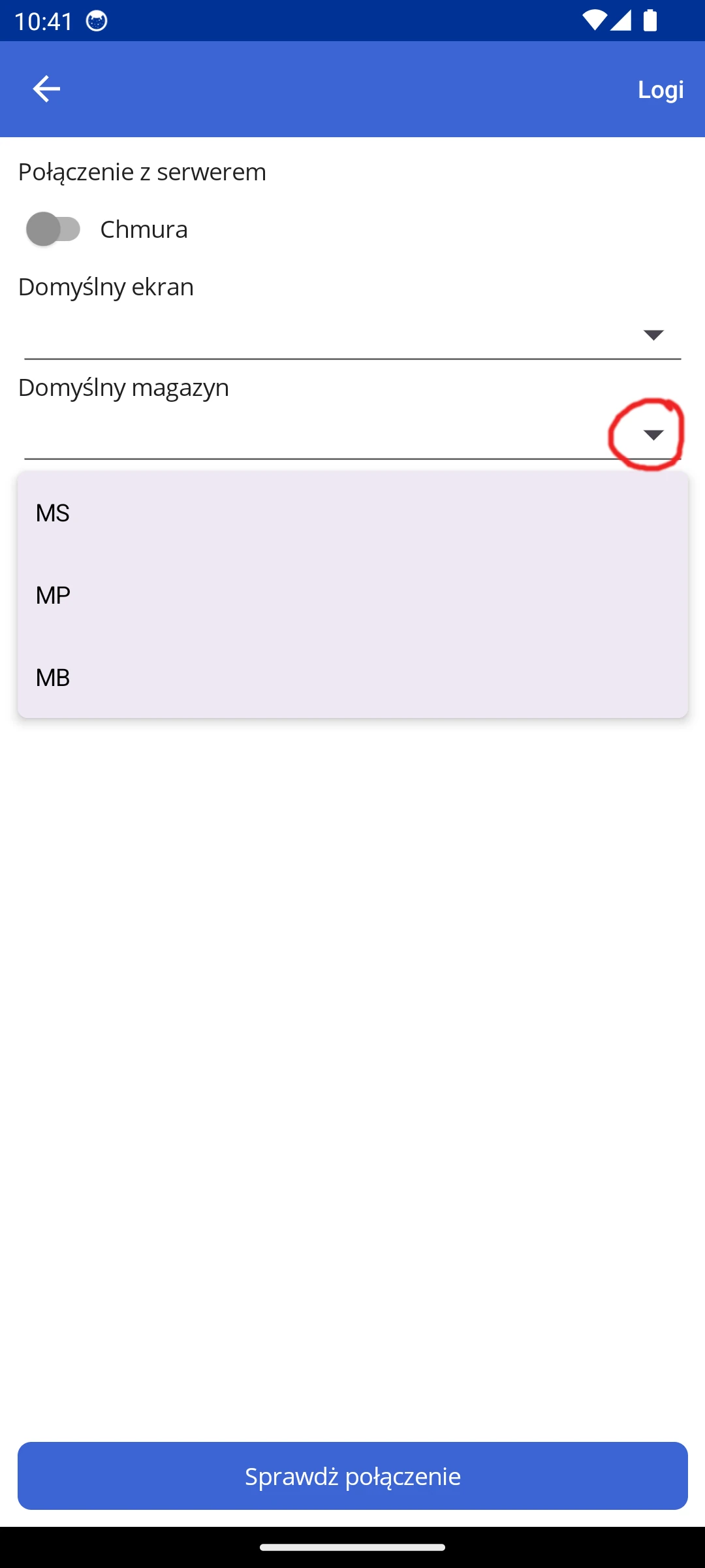 Po wybraniu magazynu należy się cofnąć do poprzedniej strony.